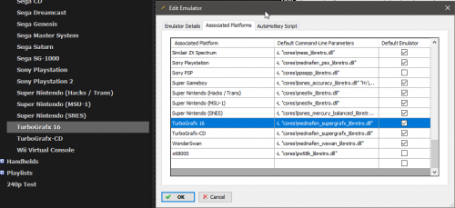 If you could provide some screen shots of these three things that would greatly appreciated, Edit Emulator - Emulator Details window, Associated Platforms tab of the Edit Emulator window and your cores folder in your retroarch install folder so that we can see you mednafen pce fast core. -