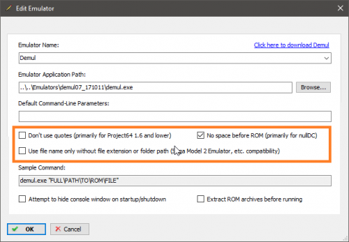 My guess is you have the path to the emulator exe set to the rom file and not the emulator itself.