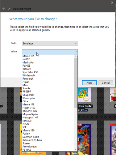 Correct, you would use the bulk edit tool to change the emulator. In Mame you would press the Tab key which brings up a menu which you can configure general controls which would be the default for all games and then you can configure controls on a per game basis. That would be up to you, there is no right or wrong way, just which way you prefer. Personally I just have the big collection and games favourited which are at the top. Probably not the best way but works for me. -