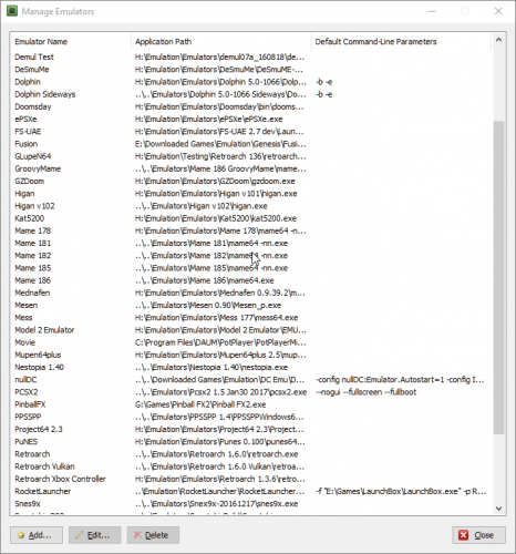When you change the emulator the Associated Platforms window changes so you wont see all the command line parameters associated with Retroarch, those are for Retroarch. You will have to set an Associated Platform which would be Arcade and then any command line parameters you may need. You don't need any command line parameters if you don't want, you can set everything in the mame.ini file. You will need to tell those games to use a mouse which is what the trackball is. Don't worry about it, I have no programming background either. I simply hammer at it and learn and when I am stuck I use Google -