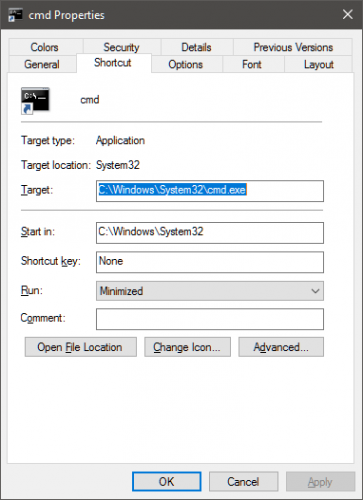 Works well and easy to do. Another method but involves a few extra steps was to create a shortcut file to cmd.exe and set it to Run: Minimized in the Shortcut tab of the properties of the shortcut. Then in the Associated Platforms command line paramters put /c. I like your method better