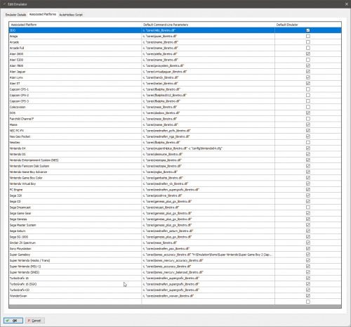 In terms of the command line parameters it is actually quite simple. In the Associated Platforms window for Retroarch in LB you need to have the names of each platform you are going to have Retroarch emulating for you. Then for each platform you will have the command line: -L "cores\core_name.dll" (inserting the name of the core dll appropriate for the system) Here is a screen shot of my Retroarch Associated Platforms list. To figure out the bios files you need you can either load up a core in RA and view the core info and it will tell you what it is needed, is looking for and if it is there or missing / mismatched. Or you can check this page here and click on each core, it will tell you which cores require bios, what the name of the bios file is and even the MD5 sum. https://wiki.libretro.com/index.php?title=Main_Page I also did this getting started guide but I did not get into the bios side of things, the guide was meant to be an introduction for people completely new to Retroarch and getting the basics sorted. I guess I maybe should think about an advanced tutorial.