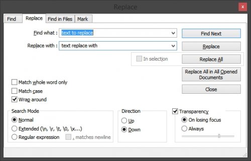 16. Press Control + F to bring up the find tool, then go to the replace tab. In the "Find what" box put the text you want to replace and in the "Replace with" box the full path you want it to change.