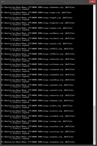 Ok I will test it out a little later. I will admit I never tested it since I already had a set of roms I wanted pulled out already. I tested with the _NoFiller.bat file and it worked just fine for me. I Notice in your screen shot yours is in the C:\Windows folder which seems rather odd. Here is a scrrenshot of mine working.