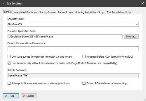 I was actually messing around with this a couple of nights ago and from what I can figure out there is no way to do this with FBA and the Unibios. From what I understand the Unibios requires a NeoGeo memory card to save its settings to and I don't believe this function is emulated. Of course I could be completely wrong and missed something in my internet searching. Now having said all that you can have NeoGeo games load up in AES mode with whatever region you want using the real bios in Mame. The first thing you want is the aes.zip bios file and put that in the folder with your game roms. You will also want to setup a new emulator entry in LB for this because it requires a box checked that Mame does not like for arcade games. You want to have the "Use file name only" box checked.Now for the command line you want: aes %romfile% -bios usa Change usa to japan if you want that region version to load. -