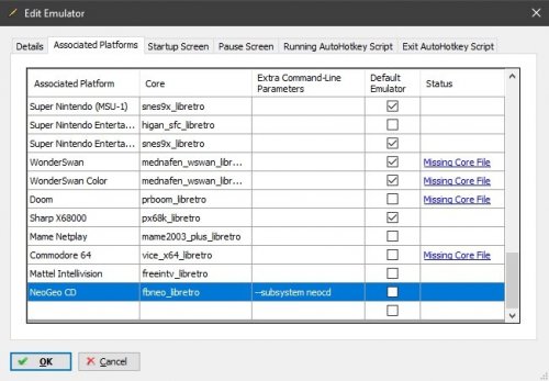 Got it figured out. --subsystem neocd Put that in the extra command line section of the associated platforms window of your RA emulator in LB.- 41 replies