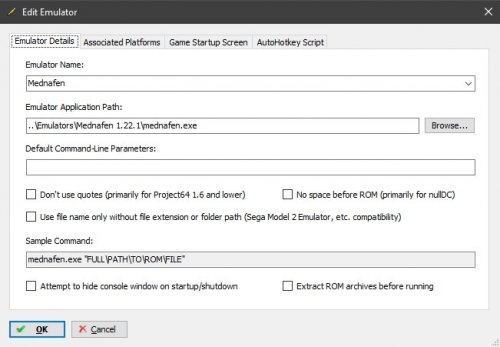 You can call the emulator whatever you want to call it in the Manage Emulators window, i'd suggest calling it Mednafen for simplicity. You can then add multiple platforms for it like I have in the screen shot above in Associated Platforms tab. You have to have platforms added to this tab for the emulator to work in LB. Also while we're at it, you do have Mednafen installed ? Because Mednaffe is not an emulator emulator, it is juts a GUI for Mednafen. Here is a quick tutorial video I did for Launchbox and Retroarch, even though it is for Retroarch most of the same principles apply here except you don't need any command line parameters with Mednafen.