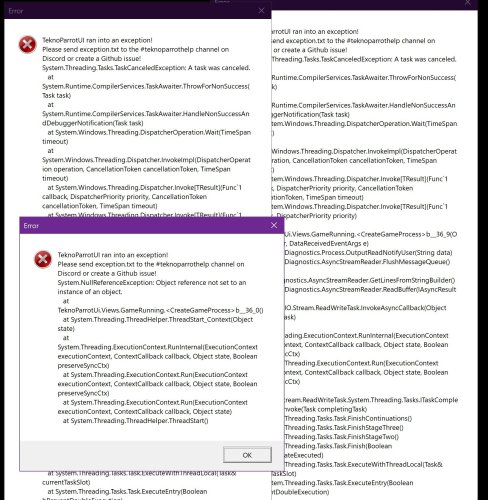 This is one of the weirdest errors I've ever come across in all my years, as a long-time user of LaunchBox and emulation in general. While using Teknoparrot on its own, there are no errors after hitting the ESC key, but there are a barrage of errors after hitting the ESC key if I run the game within LaunchBox. Also, I'm not using any hotkey commands/scripts and have no extra programs or add-ons running.