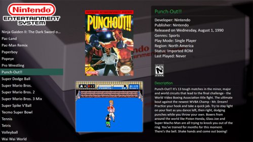 It's a great theme and I wanted to say thank you very much for putting this together. It might sound a little strange, but if there was a vertical view (instead of horizontal) as an option that would be very interesting Also, it would be nice if there was nothing appearing on the screen instead of a screenshot of the fanart appearing when a rom's video is not available. (as shown below)