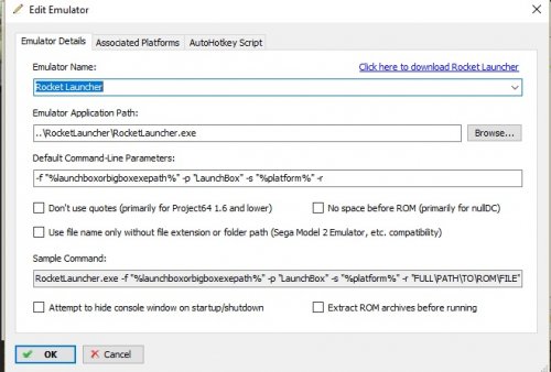 I know how to use rocketlauncher really well but I am not to sure if I could be of much help with that, but I did find a rocketlauncher wiki section about how rocketlauncher uses command line. Hopefully it will be of some help. I will try to help anyway I can. http://www.rlauncher.com/wiki/index.php?title=RocketLauncher_Command_Line_Parameters- 183 replies