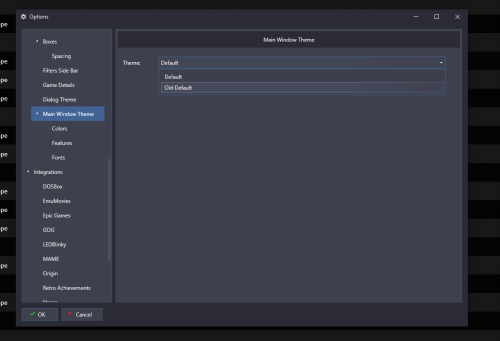 Changing the Main Window Theme to the Old Default doesn't work - finding it hard to focus/read the new colours.