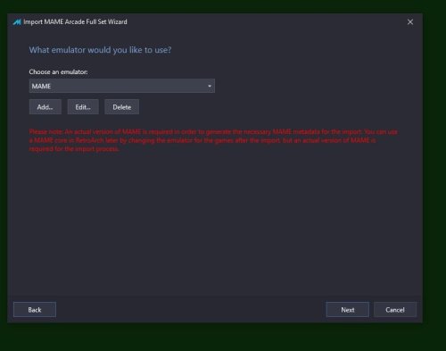 Nice! Thanks for the explanation @neil9000! What about the games that don't work such as the discrete logic games or the Laserdisc games? Is there a way to bulk import those games so I have all the arcade games available? I see there's a tickbox to uncheck that allows you to import games that don't work in MAME, so I assume this is the box I need to uncheck? Edit: I'm also running into this error when pointing it to the Arcade games folder in my Launchbox setup (the Arcade folder is empty fyi) It won't let me import a MAME 240 set because of this: