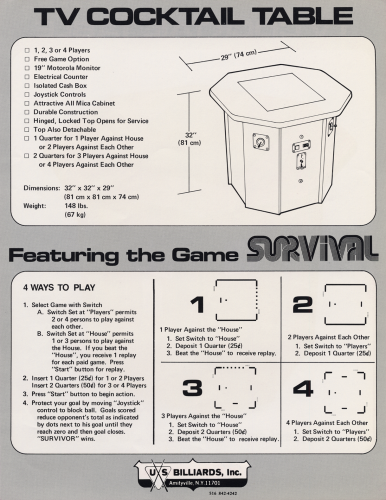 I just noticed that the game Survival (rockola maze game) comes back with a clear logo and arcade cabinet from a different game also called survival. The tv cocktail table looks like a pong style game.