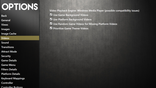 Just the Prioritize Soundtrack over Video Audio. Attached are the Sound and Video settings I'm using. I don't use VLC because sound for the Platform videos won't play at all (I don't use MP3s for any platforms), but it still crashes in the Games View just the same (music plays fine if I keep the "Prioritize" disabled; just to note). In any case I tend to prefer WMP (I know!) since video seems to load up much quicker than with VLC anyway. This may sound silly and uneducated, but is it possible that something else unrelated is causing the crashing? I ask because it seems that Big Box only crashes in a SNES category, so far. I have Super Nintendo, Super Famicom and MSU-1 platform categories (which is just SNES) and I get consistant crashes in all of them. MSU-1 only has about 5 games and it crashed on me 3 out of 3 times the last times I just tried it (still no error log). However, when I scrolled my Hacks & Fan-Made category (which is a mix of platforms with no default emulator set for it because of that), it never crashed; has about 35 games and I scrolled the list 3 times. Maybe something weird with having a default emulator set? I don't recall ever getting a crash in my Windows or Amiga category either and they don't use default emulators either.... I'll have to keep testing that theory, unless it's too whimsical a thing to chase after... I know jack squat about coding anything