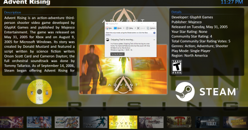 5. Not sure if this is from an update or not because I have not made any changes to settings in either Bigbox or Launchbox in a very long time, but I noticed tonight that the box art thumbnail images are being used instead of my fanart backgrounds. Advent Rising sample below. I used Steam Banners as the box art thumbnails for PC games and you can see the background is the same thing instead of the fanart. If anyone might have an idea for what is going on and how to fix, I'd appreciate it. I went through the image settings in Bigbox but do not see anything that corresponds to using box art in place of fan art.