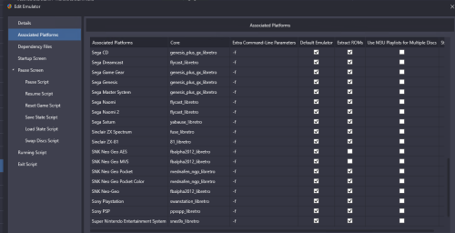 SNK NEO GEO AES core= fbalpha2012_libretro, default emulator checked , extract roms = unchecked