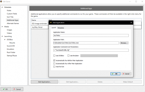 Quick follow-up: JoyToKey may require the full path of the config file as parameter. Example: C:\JoyToKey\JoyToKey.exe -r "C:\Documents\JoyToKey\Your-Game.cfg"