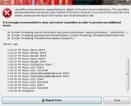 This is retrogamer. I'm running a Windows 7 Professional dell optiplex 990 with an intel 7 quad core processor thats second generation. I have attached this strange error that is occuring often in Big Box and it says you have been notified anyway but these attachments could be useful. I have recently updated Launchbox and did a disk clone from a smaller ssd drive to a larger one and those 2 operations went smooth as butter.