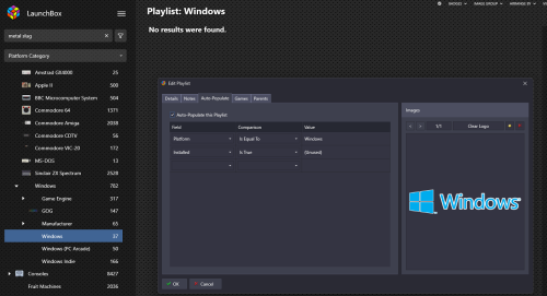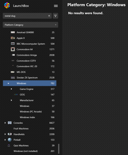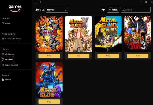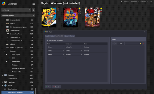 Does anyone have any issues with syncing to the Amazon storefront in terms of either finding games or noting their installed status? By way of example, I look at my Amazon games account and there are 5 Metal Slug Games installed: So, in the Windows Platform Category it cannot find ANY Metal Slug games. As I want to separate games on Storefronts NOT installed, so this category is driven by my Playlist which shows items which are the Windows platform and installed. If the playlist doesn't find them, then the category won't show them. My playlist to show games NOT installed finds 3 Metal Slug games: So, the first question is: Why does this find 3 games, but not all 5? It's not to do with the filter - even with no filter it doesn't pick up the other two games. The second question is why does it not recognise that these are installed? Any help appreciated!