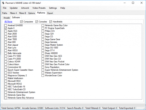 Thank you @neil9000 I recently tried the new MAME importer and was really impressed with the results. Unlike the old importer, I was able to find and restore all my favorites using the default filter against my full merged sets (MAME v0.202). I'm also happy to learn that importing the Software Lists is something that is planned. I've learned the hard way (while creating my own version of LightSpeed) that importing SL is not that trivial. Some might think that you can simply assign the appropriate command line parameter to the platform level but for some platforms that would not be sufficient and command line parameters have to be assign at the game level. An example of that is with the Atari 7800. Some of the games listed in the a7800.xml (found in the hash folder of MAME) are NTSC games and others are PAL games. NTSC games have to be launched using the "a7800" parameters while PAL games have to be launched using the "a7800p" parameters so that the correct mame machine is used to launch the game. This is just a simple example. There are more complex scenarios with other SL platforms. Fortunately, the information necessary to make that decision can be parsed from these xml files. I would be happy to share all of my findings with @Jason Carr when he's ready to implement Software Lists in LB/BB. This would save Jason a lot of time and frustrations. Hint, hint Jason ?. Just PM me if you wish and I'll send you code spinet that shows what to look for in these SL xml files.
