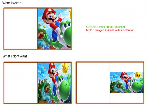 Thx @wallmachine , but it's dont work ... I have the second result of my illustration : the video is deformed, strech. With VLC or WMP. To clarify the context, I do some tests. A 16x9 format cut in half. I want to place the video only on one side. I used a grid / column system for cutting. Here is my Platform page test : <UserControl xmlns="http://schemas.microsoft.com/winfx/2006/xaml/presentation" xmlns:x="http://schemas.microsoft.com/winfx/2006/xaml" xmlns:mc="http://schemas.openxmlformats.org/markup-compatibility/2006" xmlns:d="http://schemas.microsoft.com/expression/blend/2008" xmlns:transitions="clr-namespace:Unbroken.LaunchBox.Wpf.Transitions;assembly=Unbroken.LaunchBox.Wpf" xmlns:coverFlow="clr-namespace:Unbroken.LaunchBox.Wpf.Controls.CoverFlow;assembly=Unbroken.LaunchBox.Wpf" xmlns:cal="http://www.caliburnproject.org" xmlns:i="http://schemas.microsoft.com/expression/2010/interactivity" mc:Ignorable="d" d:DesignHeight="562" d:DesignWidth="1000" HorizontalAlignment="Stretch" VerticalAlignment="Stretch" Style="{DynamicResource UserControlStyle}"> <Canvas Name="Canvas"> <transitions:TransitionPresenter TransitionSelector="{Binding BackgroundTransitionSelector}" Content="{Binding BackgroundView}" Height="{Binding ElementName=Canvas, Path=ActualHeight}" Width="{Binding ElementName=Canvas, Path=ActualWidth}" IsContentVideo="true" /> <Grid Height="{Binding ElementName=Canvas, Path=ActualHeight}" Width="{Binding ElementName=Canvas, Path=ActualWidth}"> <Grid.Background> <SolidColorBrush Color="White" Opacity="{Binding BackgroundFade}" /> </Grid.Background> <Grid.ColumnDefinitions> <ColumnDefinition Width="50*" /> <ColumnDefinition Width="50*" /> </Grid.ColumnDefinitions> <coverFlow:FlowControl x:Name="FlowControl" Grid.Column="0" HorizontalAlignment="Stretch" VerticalAlignment="Stretch" CoverFactory="{Binding CoverFactory}" ImageType="Clear Logo" CurveAmount="0" CameraZPosition="3.0" VisibleCount="8" PageSize="6" Spacing="1.0" ItemZPosition="1.0" SelectedItemZPosition="2.0" /> <transitions:TransitionPresenter Grid.Column="1" TransitionSelector="{Binding BackgroundTransitionSelector}" Content="{Binding BackgroundView}" Height="{Binding ElementName=Grid, Path=ActualHeight}" Width="{Binding ElementName=Grid, Path=ActualWidth}" IsContentVideo="true" /> </Grid> </Canvas> </UserControl>