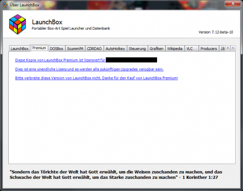 - Big Box Startup Videos wurden überarbeitet und bieten neue Features - Big Box unterstützt jetzt einzelne Themes für jede Plattform/Playlist - Mediendateien und Windows-Verknüpfungen können jetzt einfacher importiert werden --------------------------------------------------------------------------------------------------------------------------------------- I also found a non-working hyperlink in the about form. An error occurs if i click it. Maybe you can check it out. Language-de-DE LB 7.12.rar