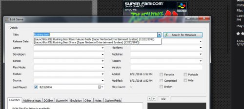 This is my point, I tried adding a game, but it was not been added.. so I did this, choose another game that was added already, details, changed rom path to the file I was adding previously to make sure it was working and it did work. I searched in the metada but the game was not found. only 2 out of 3 of the rushing beat series as you can see in the image. So by dragging n drop it is not adding the game, I get 0 games added pop up