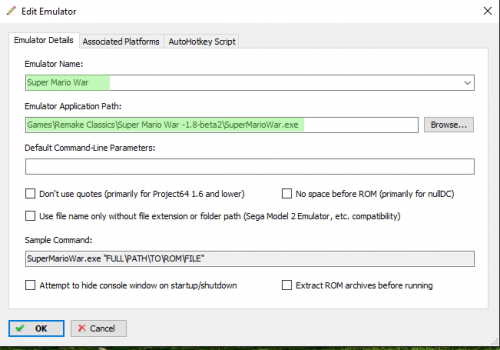 I set up smbx as an emulator and point to the smbx exe then under the launcher tab i point it to the same exe. I then go back to the smbx emulator setting and under the ahk script page I put the code there. Only thing other then that is do you have the line IfWinActive, Super Mario Bros. X - Version 1.3.0.1. www.SuperMarioBrosX.org all on 1 line? Looking on your screenshot looks like you have it on 2 line so not sure if that matters.
