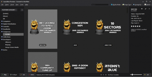 I'm trying to build cross-ID maps between various databases as well as collect data that's not often used for custom fields to be displayed in BigBox theme elements. Showing the award icons on these items would be interesting. I need to make a hyperspin forum account so I can look at what you've linked. I've not used non-stock Doom WADs in a long time so I need to relearn a few things.