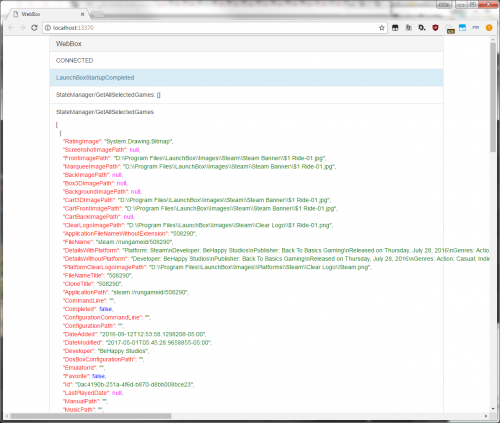 @pdavis I wrote my own little server but I spent all my time on the websocket portion to notify the client of events. It was quite tough to find a good websocket set and I nearly ended up coding my own before I found a small little library I could fork. I can see we both went for very different methods, where I went for a tiny little server wrapping the API and you went for a bit more of a structured wrapper with a sub-process. I'm not really feelin' it on this project though, and while I'm not sure if what I've done is compatible with your code I'd be glad to toss it to you to see if it can help. I feel like a tighter more reduced embedded system is the way to go, personally. If you're interested shoot me a PM and I'll throw you a zip of the code. This probably wasn't a waste on my part since I think I am going to switch to either custom UDP/TCP or websocks very similar to this for my 32bit interproc I currently use a named pipe for. Web requests are just so much easier to work with than blocking streams. I've attached a screenshot of what little I have so far.