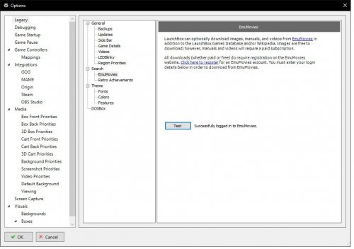 4. I just picked God of War for a test, picked "Edit", then went to the Media section and clicked "Download Media". It shows up just fine on the LaunchBox Database tab: Not fine on the EmuMovies Tab: . My credentials works fine, because I already have videos for most of my games, and: