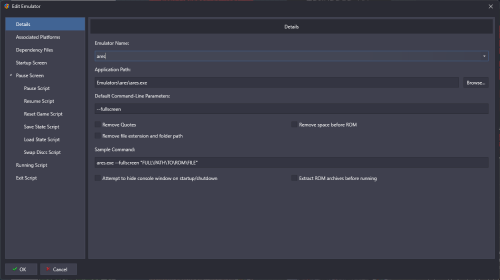 Thank you for the link, I was unaware of the other variable command line parameters so that was appreciated! The only other question I had was what order the parameters are placed in? I assume it's this order but just curious if that's correct. 1. Emulator exe 2. Edit Game / Launching / Emulation / Use Custom Command-line Parameters 3. Manage Emulators / Associated Platforms / Default Command-Line Parameters 4. Manage Emulators / Default Command-Line Parameters So if there were special command-lines in all those areas, would the final command that's sent look look like this? Emulator.exe "game specific command-line" "associated platform specific command-line" "emulator specific command-line"