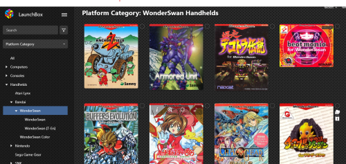 In my Launchbox set up, I have translated games in their own separate platform e.g. WonderSwan [T-En] When I click on the main WonderSwan platform, the one that contains the regular WonderSwan games + the WonderSwan [T-En] games, Launchbox will display all games from both of those platforms. Is that game list, the WonderSwan games + the translated ones, something I can access in BigBox? I can see each of the platforms in BigBox (WonderSwan & WonderSwan [T-En]) but I can only access them individually. I also tried using the "View Platforms Categories" option in BigBox which allows me to see the various layers of platforms I have set up (HandHelds > Bandai > WonderSwan > WonderSwan OR WonderSwan [T-En]) but the only way to see the games is to drill all the way down to either WonderSwan or WonderSwan [T-En] I can't figure out who to make BigBox display games from both platforms like it does in Launchbox. Any help would be appreciated.