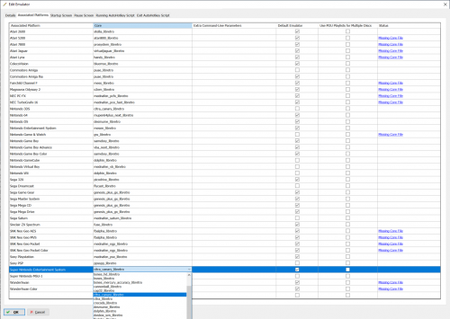 7. As well as specifying Retroarch as the emulator you also need to go to the associated platform tab and specify the core you want to use for each specific system. Also what the platform is called here also needs to match what you called it when you imported it.