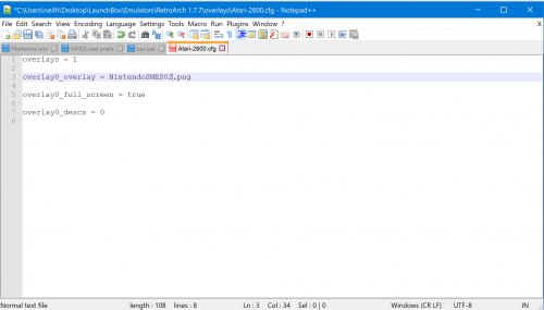 OK well that pack just comes with the bezels, but not the actual .cfg needed to actually display them in Retroarch. Download this attached file. Atari-2600.cfg You will need to rename it so you can identify what platform it is for, so just copy paste and rename to snes or something if you want to use it as a snes bezel. Place the .cfg in the same folder as the bezel images and open the .cfg in notepad or notepad++. The second line will say "overlay0_overlay = Atari-2600.png" you will need to edit the "Atari-2600.png" part to match the name of the image you want to use. For example in that pack there is a snes image called "NintendoSNES02.png" So the name in the config will need to match that image file, and will look like this.