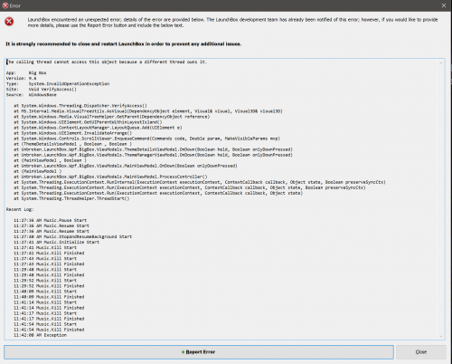 OK a couple of things you could try for me if you dont mind. Can you navigate to your Launchbox/Metadata folder and post a screenshot of it please, i would like to check that all the correct .dll's are still there. Also if you have the installer can you install a fresh version to your Desktop rather than where you normally install it, see if it opens, if it does can you restart your computer and try opening the same one on your desktop again.