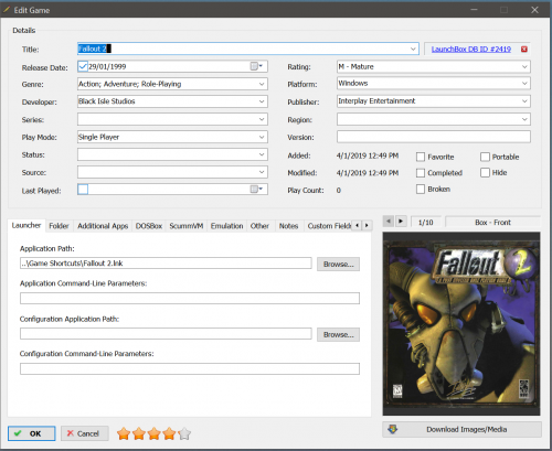 Fallout 2 from GOG imports just fine. As @Belgarath said it's not a DOS game, so just import the .lnk to a platform like Windows for example.