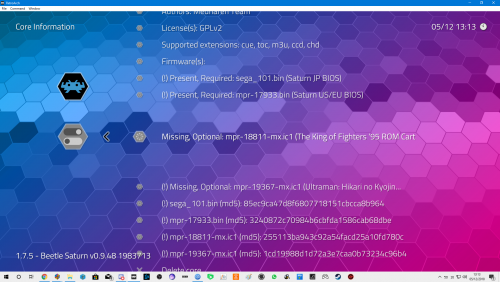 22. Error fail to load is usually because the game or the bios is wrong/broken,if you load the core and go to info in the main Retroarch UI does it show the bios as present? Also you dont need to scan the games into retroarch, but if you are and its not seeing it that usually only happens if you dont have the core for that system downloaded. My games imported there fine but mine are in CHD format. Also when you try to load the game in Retroarch you are loading the .cue right not the .bin, bins dont work in the beetle saturn core.