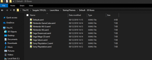 This is a Startup/Shutdown theme for Launchbox 9.3 and above. Four images are displayed in this theme, top row left to right, 3D Box, Clear Logo and Screenshot. The bottom right of the window will show Cart - Front for cart based systems or a rotating Disc - Front for CD/DVD based systems. If you have a CD/DVD based system that is not included in the theme you can copy/paste one of the existing ones from the startup theme folder and rename it to match your system name. To install simply right click the zip and choose "extract all" once extracted copy to Launchbox/StartupThemes.