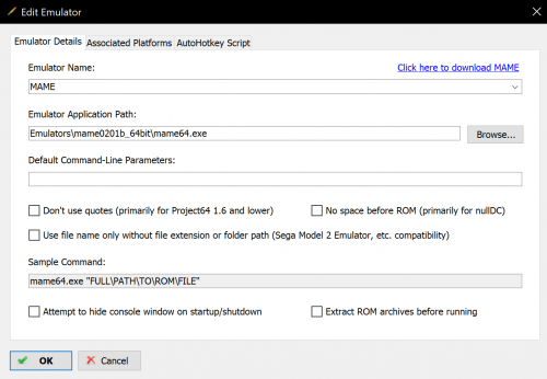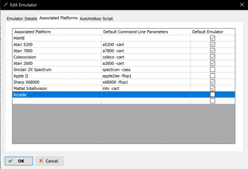 In Launchbox go to tools/manage emulators, double click your MAME entry, and then click on the associated platforms tab, like this. Then go to the empty cell there and double click it, enter the name of your platform, and the command line that was given to you above, so it would look like this.