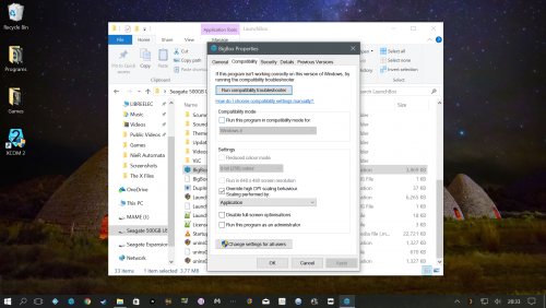 OK, let me chime in here as well. I just checked on my system. I have it set to 100% normally. I changed by right clicking the desktop and changed it to 150%, then restarted to make sure it stuck. I then right clicked bigbox.exe, chose blah blah. This is how massive and shit it looked. As you can see i hit the dpi scaling button, and bigbox looked just like it does at 1080p 100% scaling. So....