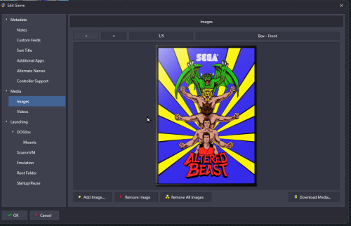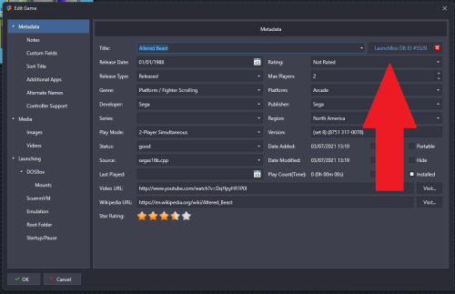 Then I am at a loss as to why you originally had the rom folder as Launchbox/Games, that is something Launchbox would do if you told it to move or copy your games during the import. Also in the pictures you provided, and i did comment on this, you have no database ID for Altered Beast. You say that Launchbox imported all your games and got media for everything just fine, but if this was the case then I see no media associated with Altered Beast in your image, nor does Altered Beast have a database ID, like so. So something doesn't add up here, you say everything imported fine, but i see no database ID's, i see no media, and your games don't actually launch. Can you walk me through the steps you actually took to import your MAME romset? Also now looking at your pictures it looks like you are using a old version of Launchbox also, what version are you on?