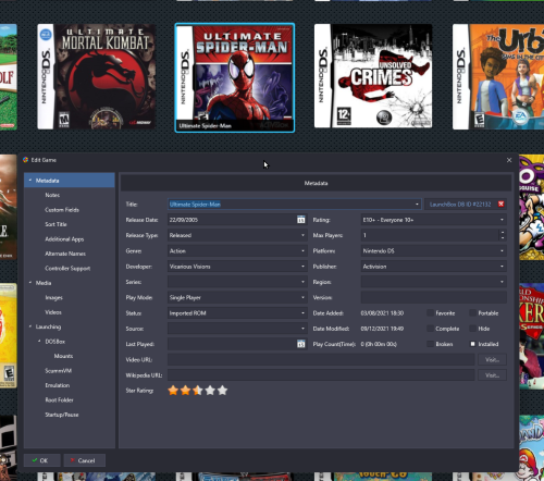 Nintendo - DS is a custom name, so did you also set the "Scrape As" as Nintendo DS when importing the platform? Also what is the actual file name for that Splinter Cell game? -