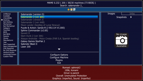 NA should be the default, i imported with the default settings also and contra shows for me in a search. No. If you look at your image you have all the other versions of the game listed as well, simply make one of the other versions the default by clicking on it and hitting the make default button. The default options are what you want, it sounds like in this case that "Gun & Frontier" is the parent rom and "Gun Frontier" is a clone of that, so again simply make the one you want default as i described previously. For that game there is a "World" and "Japan" version, as you chose "North America" as your preferred region in the import wizard, and there isnt a version of that game for that region then my guess is you got the "world" version by default and that may have the different naming to the "Japan" rom. Gun & Frontier (World) - MAME machine (arcadeitalia.net)