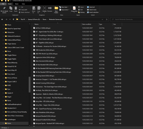 My Gamecube collection for reference, they are compressed as you can see from the sizes, but are decompressed on the fly in the emulator, so best of both worlds. I believe the compression i am using is now outdated and there is a new format for Gamecube, but you get the idea.- 15 replies