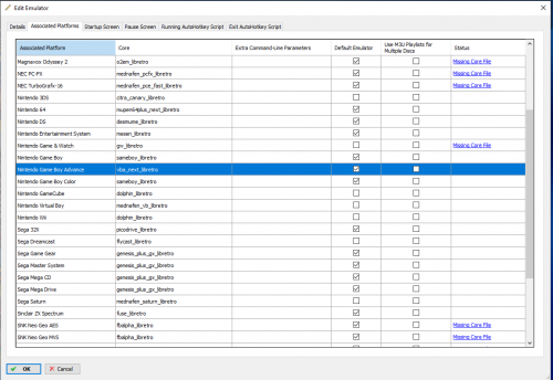 Once that is done go to the "Associated Platforms" tab, you will now see it looks different to your image, as it is already pre-populated with the most common systems and the our "recommended" cores for them (both system name and the core used can be freely changed).