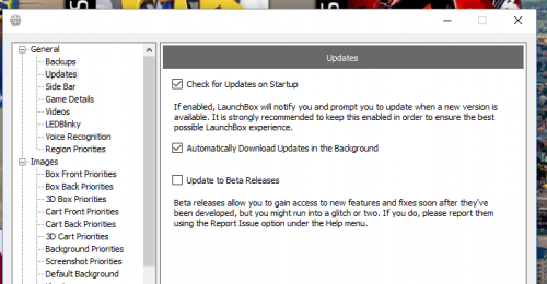 Hello, I am currently on 7.10 and cannot get LaunchBox to prompt me for the update. I believe I have the auto update feature properly configured as shown below: Is there a way to force Launchbox to update since it is not prompting me to update on startup and I know I am running an older version: Thanks for any help!
