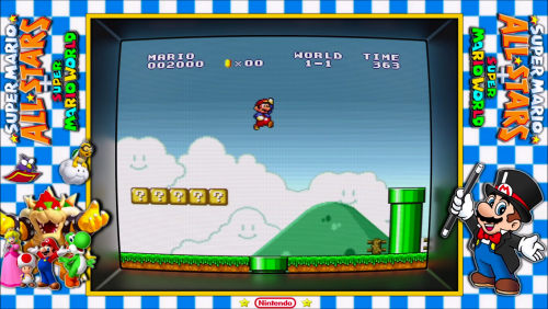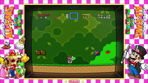 Here's a Super Mario All Stars bezel that works with HyperspaceMadness's reflection shader for Retroarch