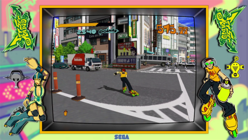 Here is a arcade bezel for The Outfoxies that uses a reflective shader by HyperSpaceMadness for Retroarch