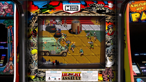 Here is an Arcade bezel for Desert Assault that uses a Reflective Shader by HyperSpaceMadness for Retroarch